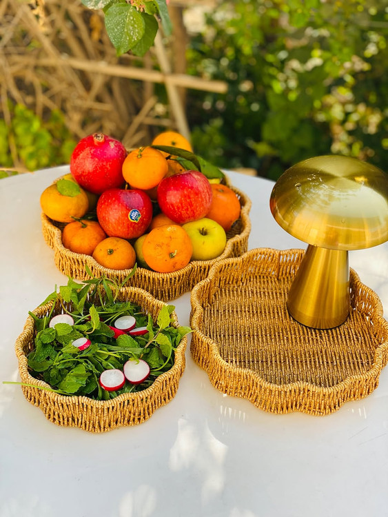 کیفیت فوق العاده ای داره قابل شستشو تغییر رنگ نمیده وارداتی جنس طرح حصیر محکم وبا دوام ومقاوم دربرابر وزن سنگین سایز۲۰/۲۴/۲۸ مناسب برای نون،میوه،سبزیجات،نظم دهنده، اکسسوری،دکور،مزه ویا هرچیزی که دوستدارین میتونید استفاده کنید.