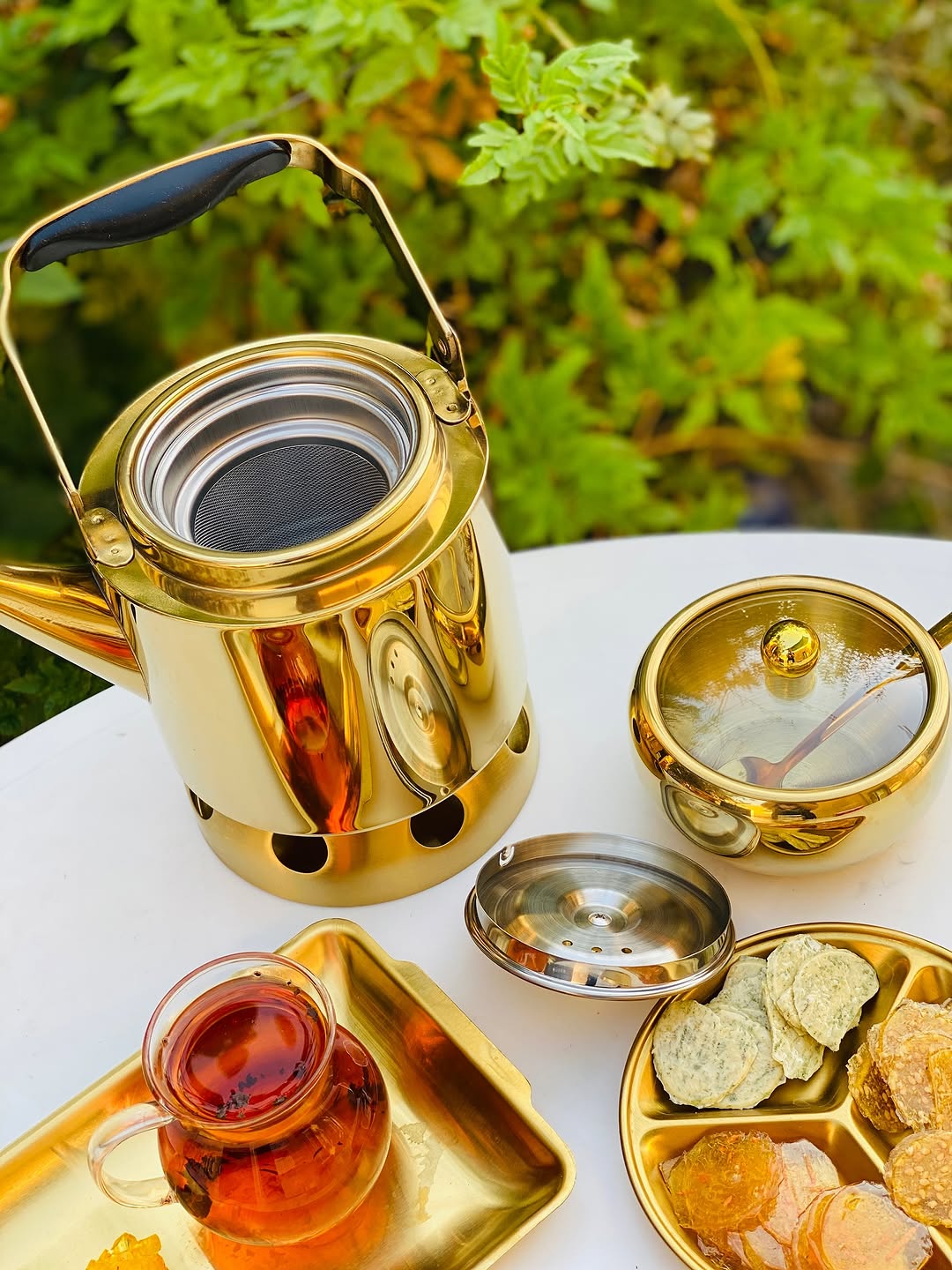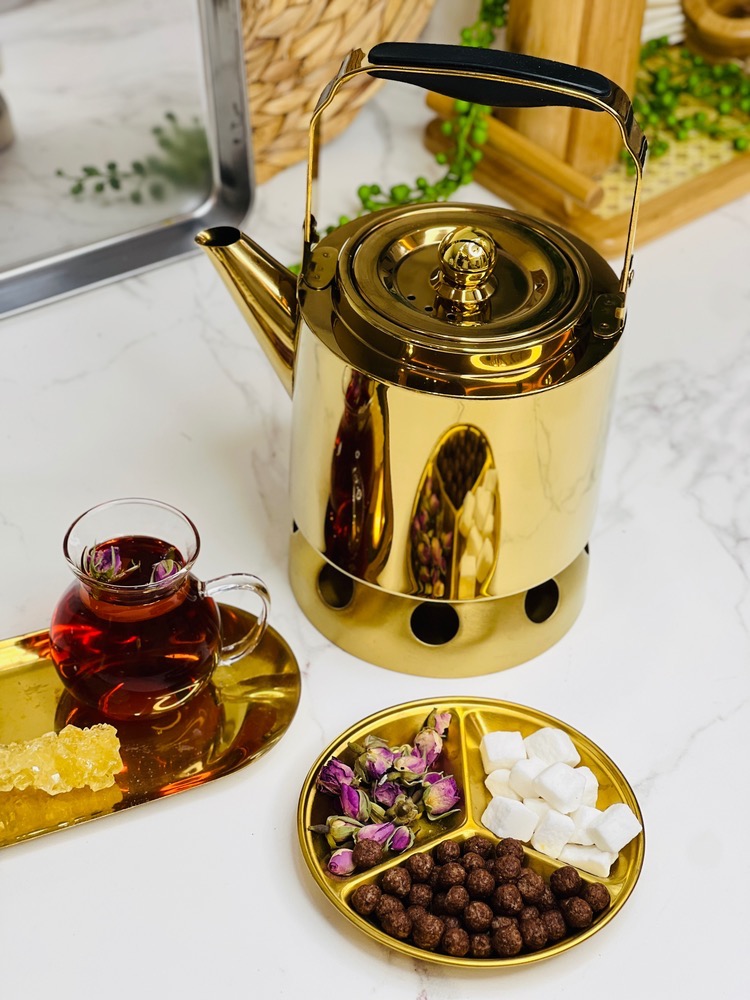 این ست طلایی و استیل دارای کیفیت تضمینی و حجم هر عدد ۱/۸ لیتر با صافی تور دار استیل میباشد. مناسب برای استفاده در محیطهای شیک و مجلل.