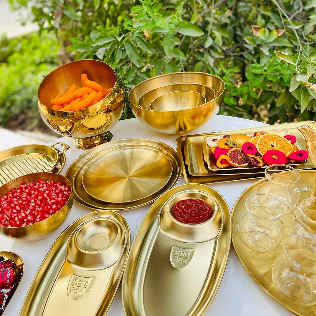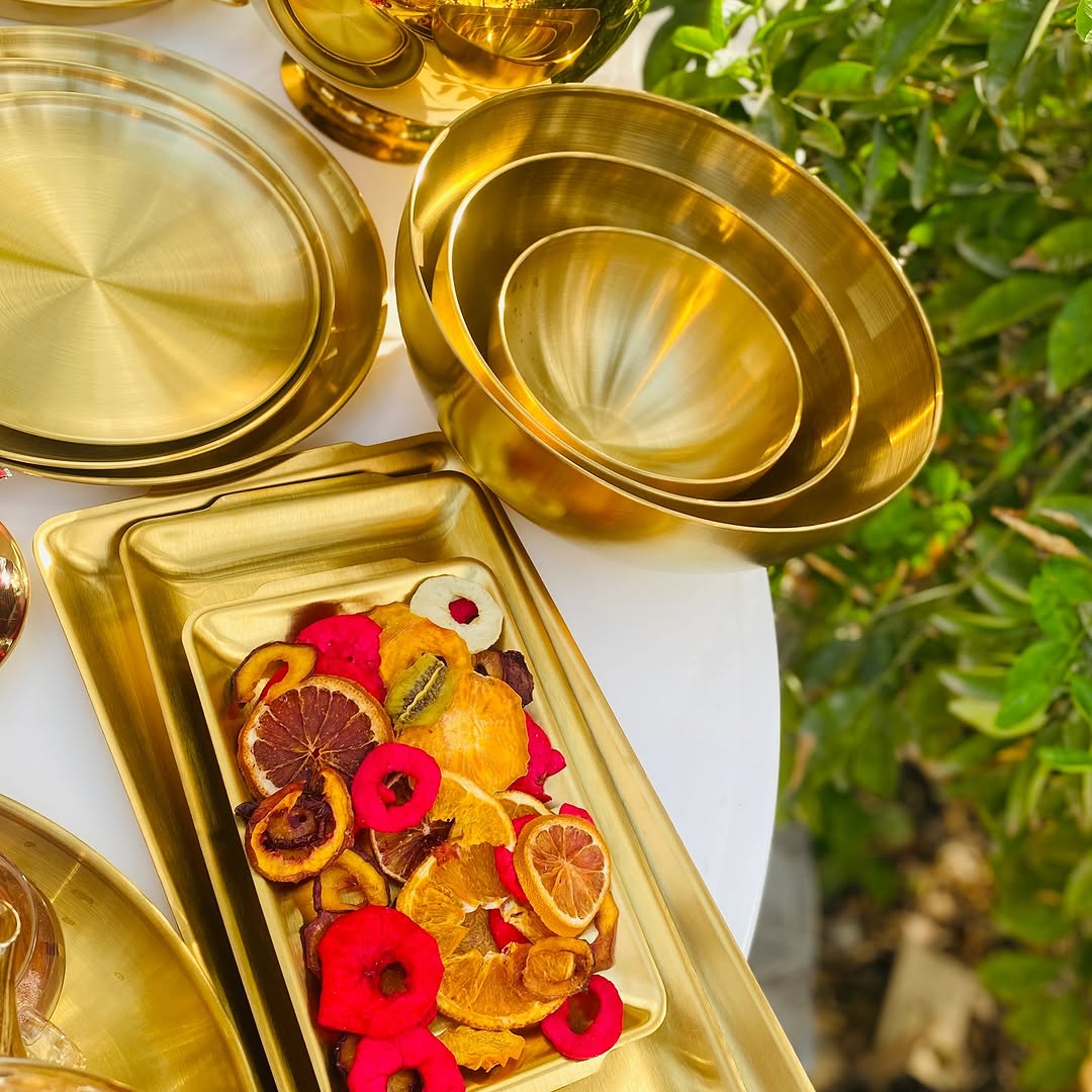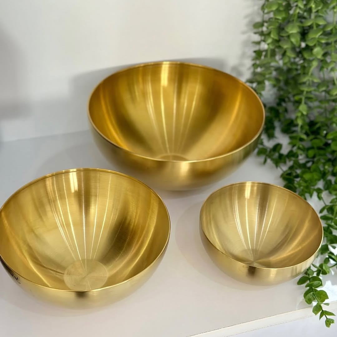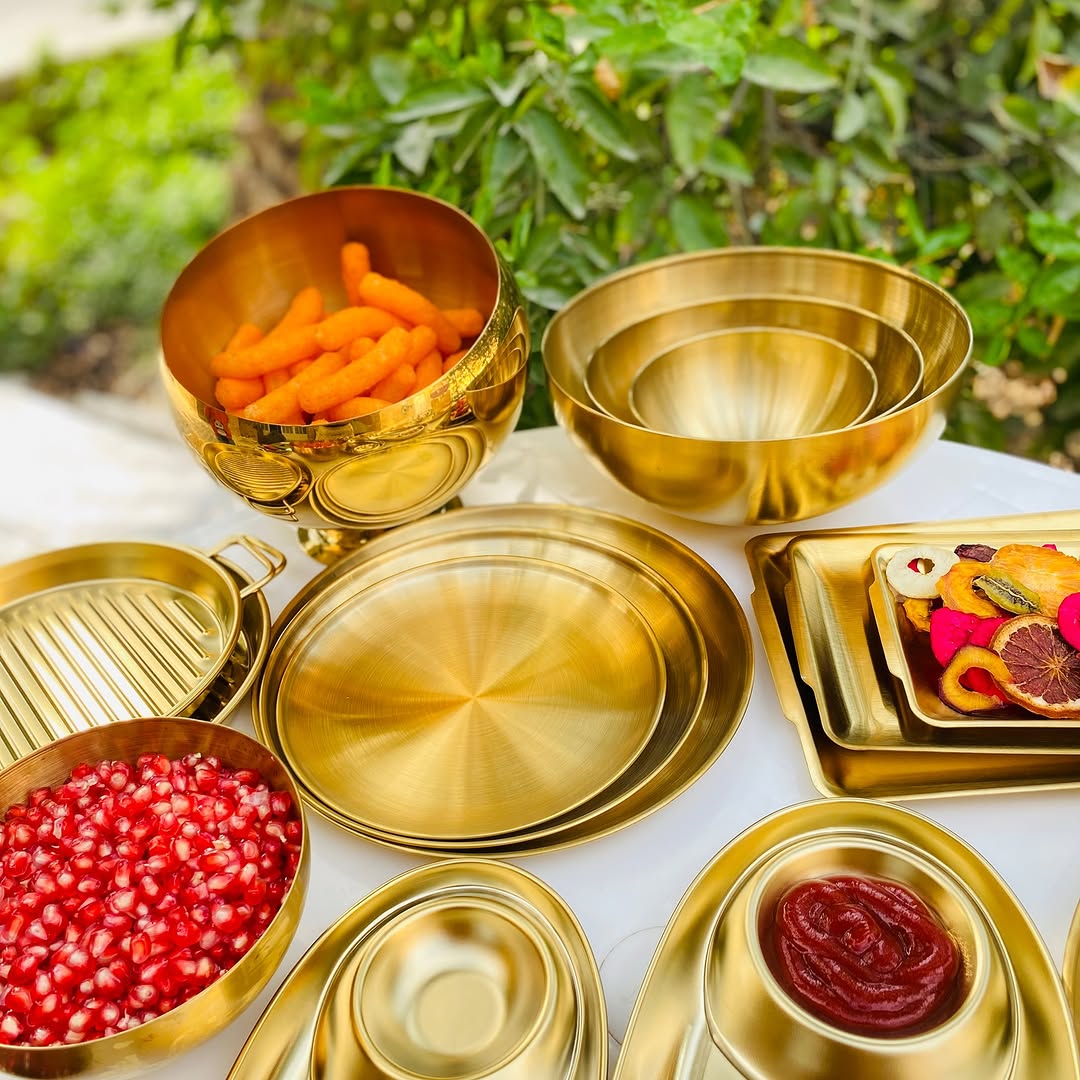 کاسه طلایی پرفروش و پردرخواست ترین آیتم ظروف طلایی جنس تمام استیل وارداتی رنگ ثابت قابل استفاده؛ چیدمان میز مزه، انواع غذاهای خورشتی و میوه و تنقلات.