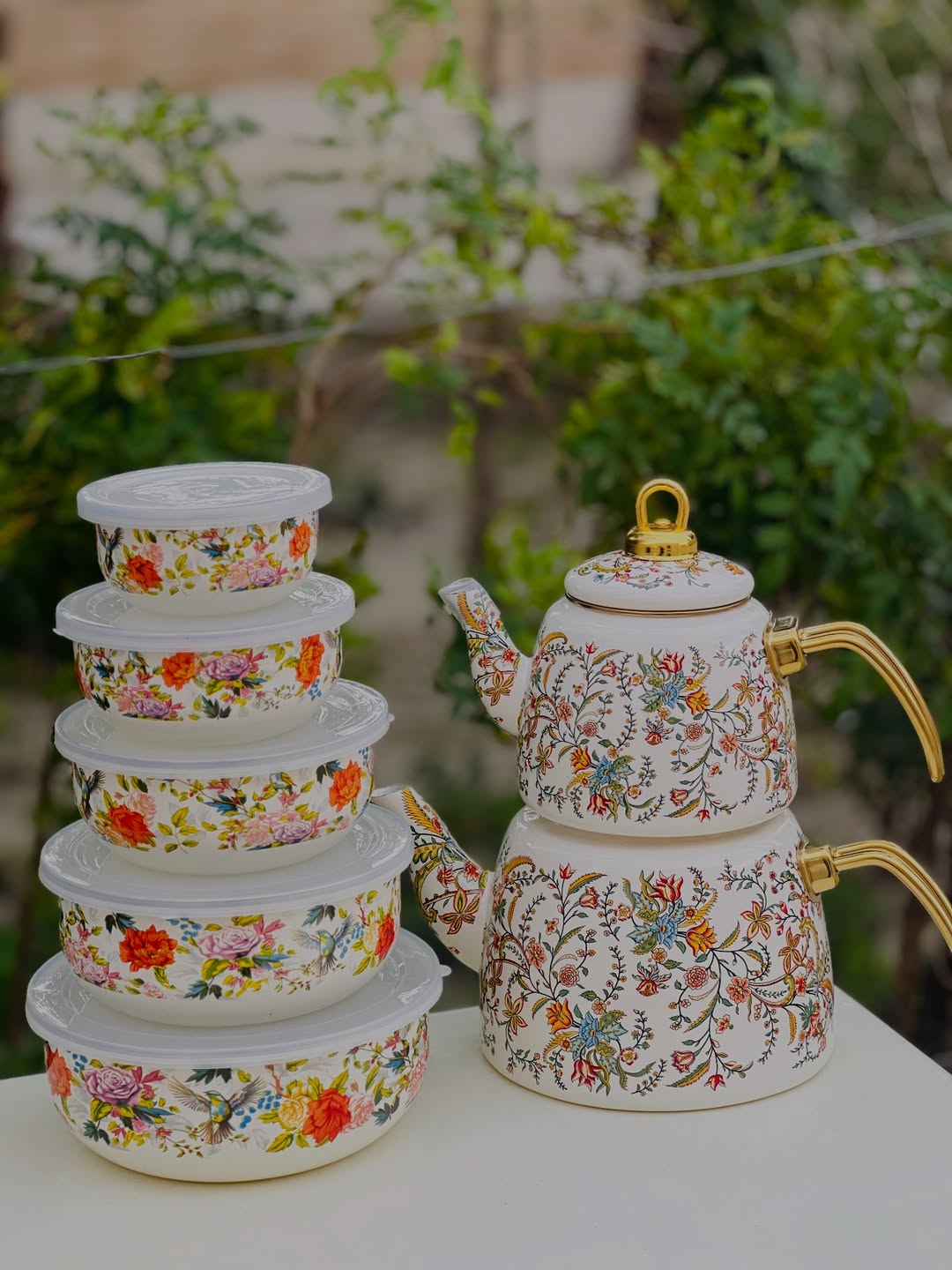 کتری قوری لعابی با جنس لعاب درجه یک و کیفیت فوق العاده عالی. دارای حجم کتری ۲ و حجم قوری ۱. این مجموعه تک رنگ و تکطرح دارای دو درب به صورت جداگانه میباشد.